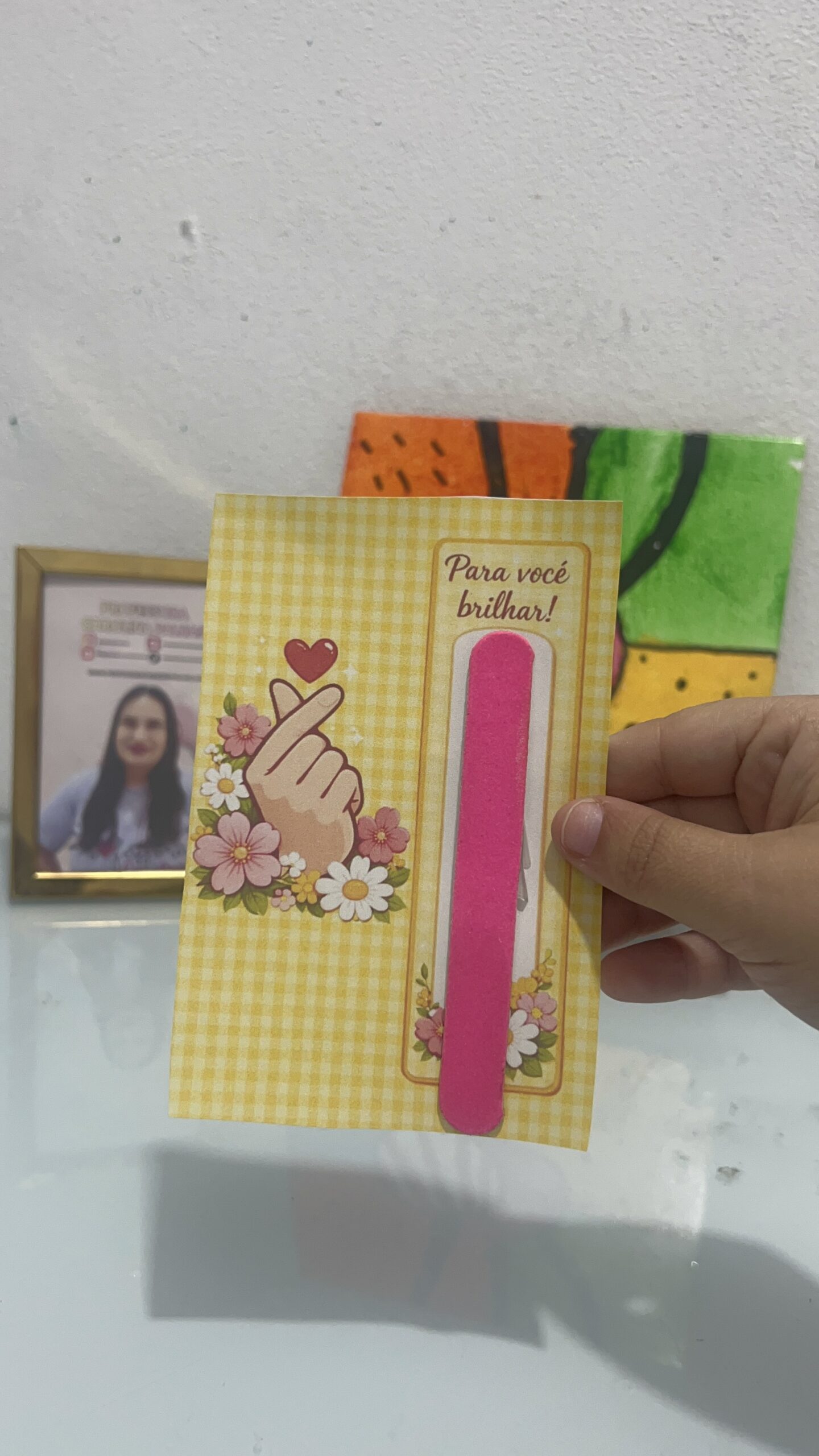 Mais do que entregar um cartão, ela está aprendendo a dizer: