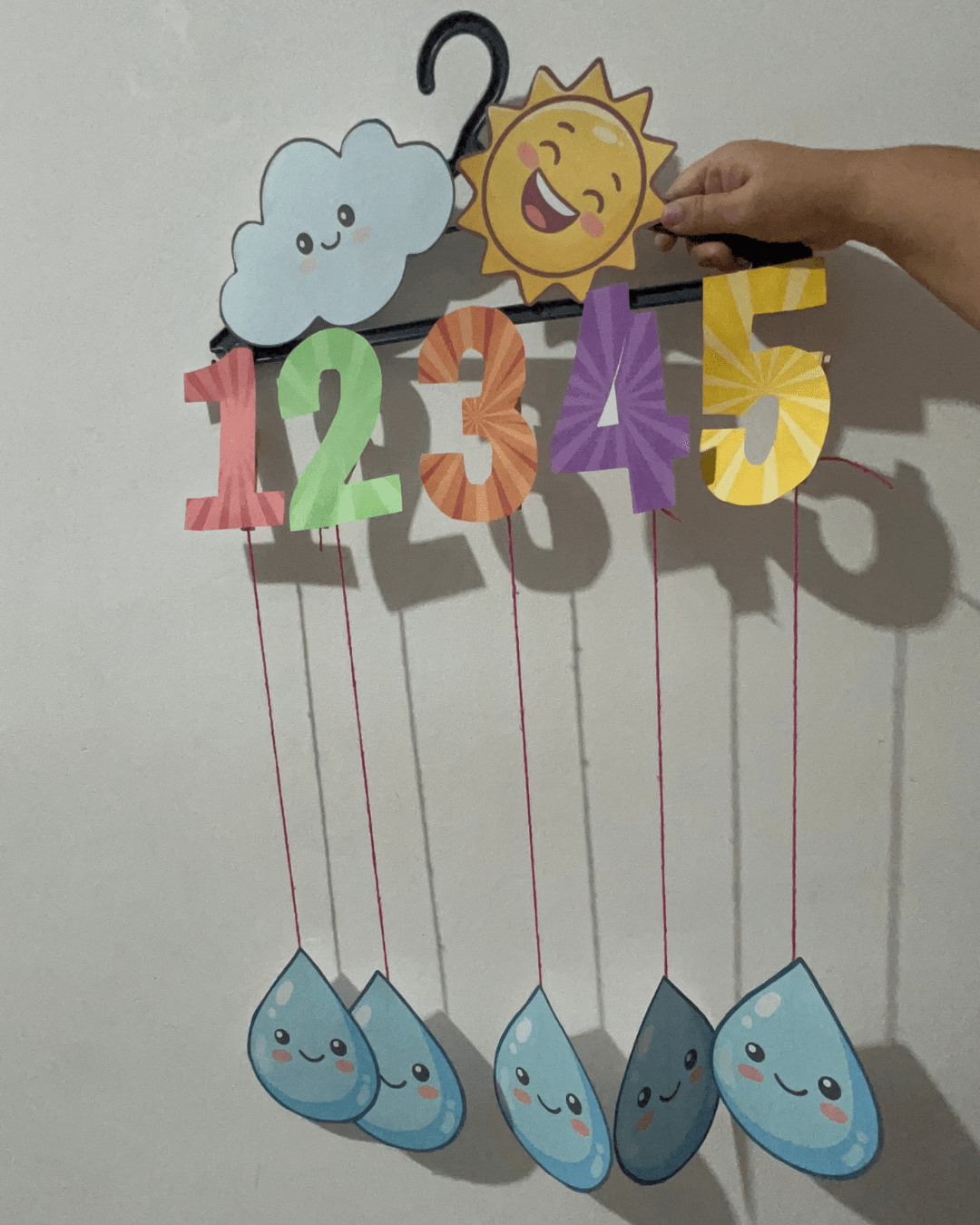 Pensando nisso, surge o Cabide Musical das Gotinhas, um recurso pedagógico criativo inspirado na música infantil “Cinco Gotinhas Subindo Pro Céu”.