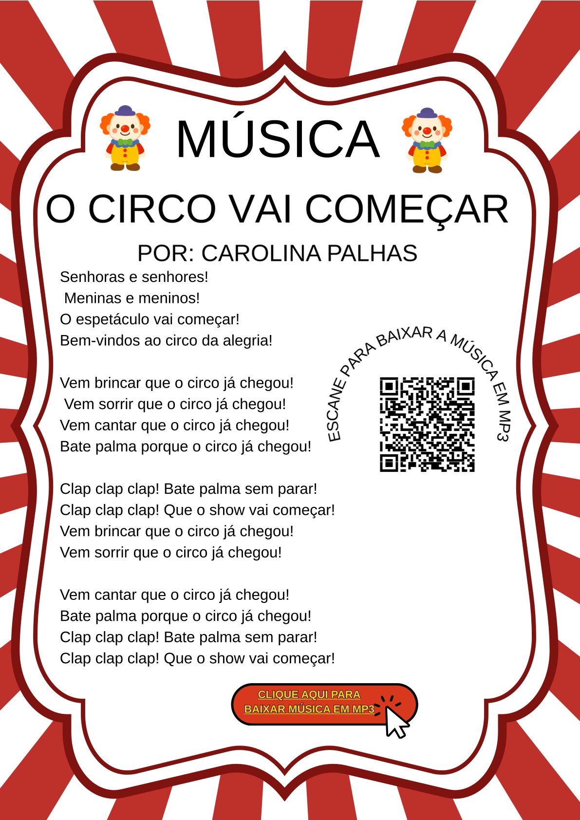 ✔ Música infantil exclusiva “O Circo Vai Começar”