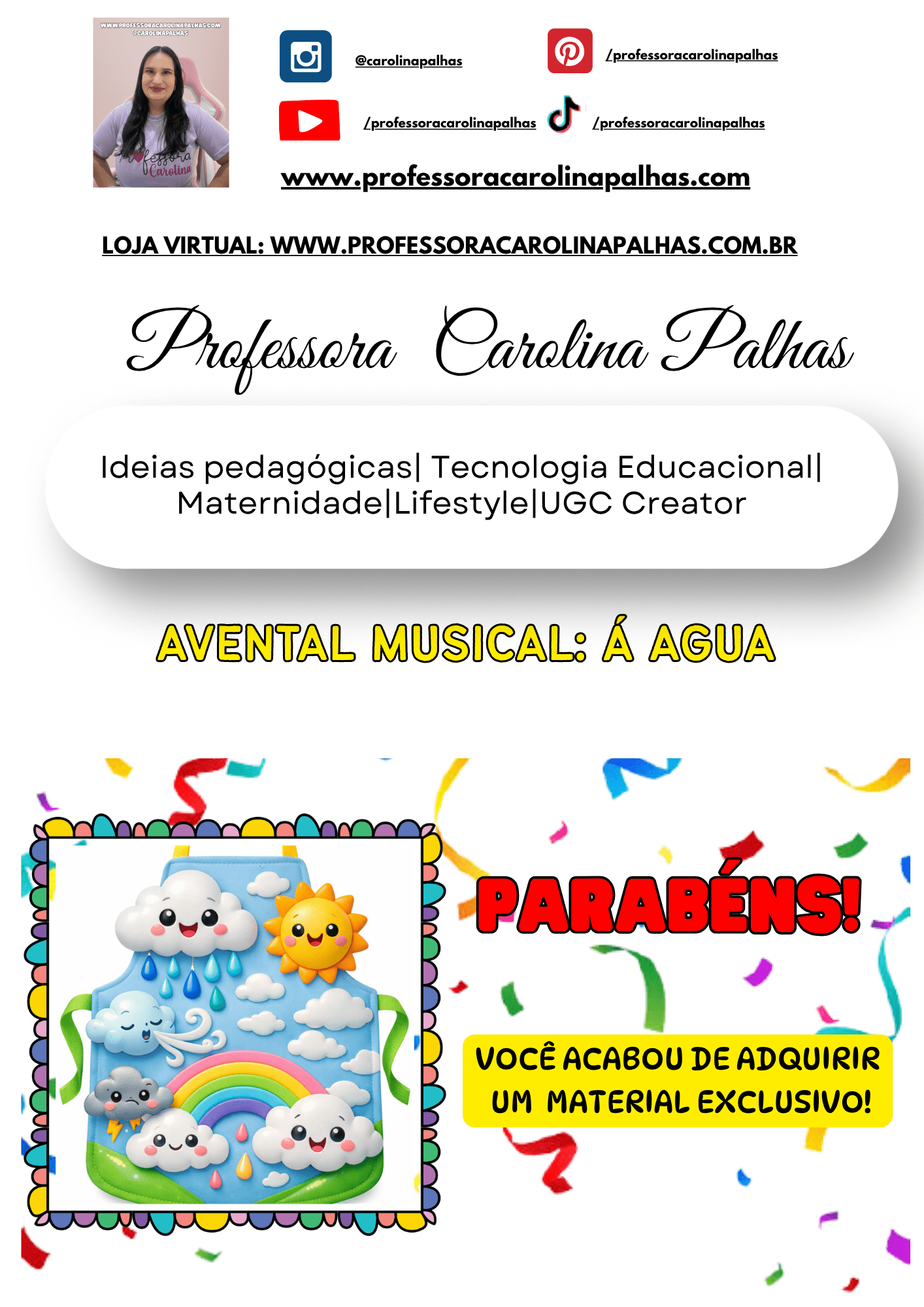 Palavras-chave: educação infantil, música infantil, ciclo da água, atividades lúdicas, BNCC, recursos pedagógicos, avental pedagógico, palitoches, aprendizagem significativa, coordenação motora, consciência ambiental, projetos pedagógicos, tecnologia na educação, planejamento semanal educação infantil, atividades com música