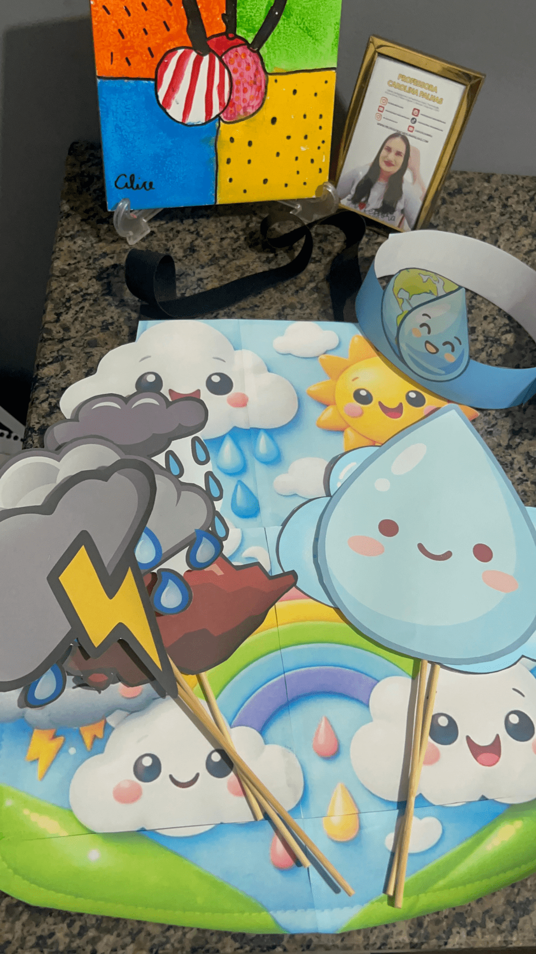 Ao utilizar recursos como os que você criou — gotinhas, nuvens, chuva, trovão e elementos do ciclo da água — a criança não apenas ouve, mas visualiza, manipula e vivencia o conteúdo. Isso favorece: