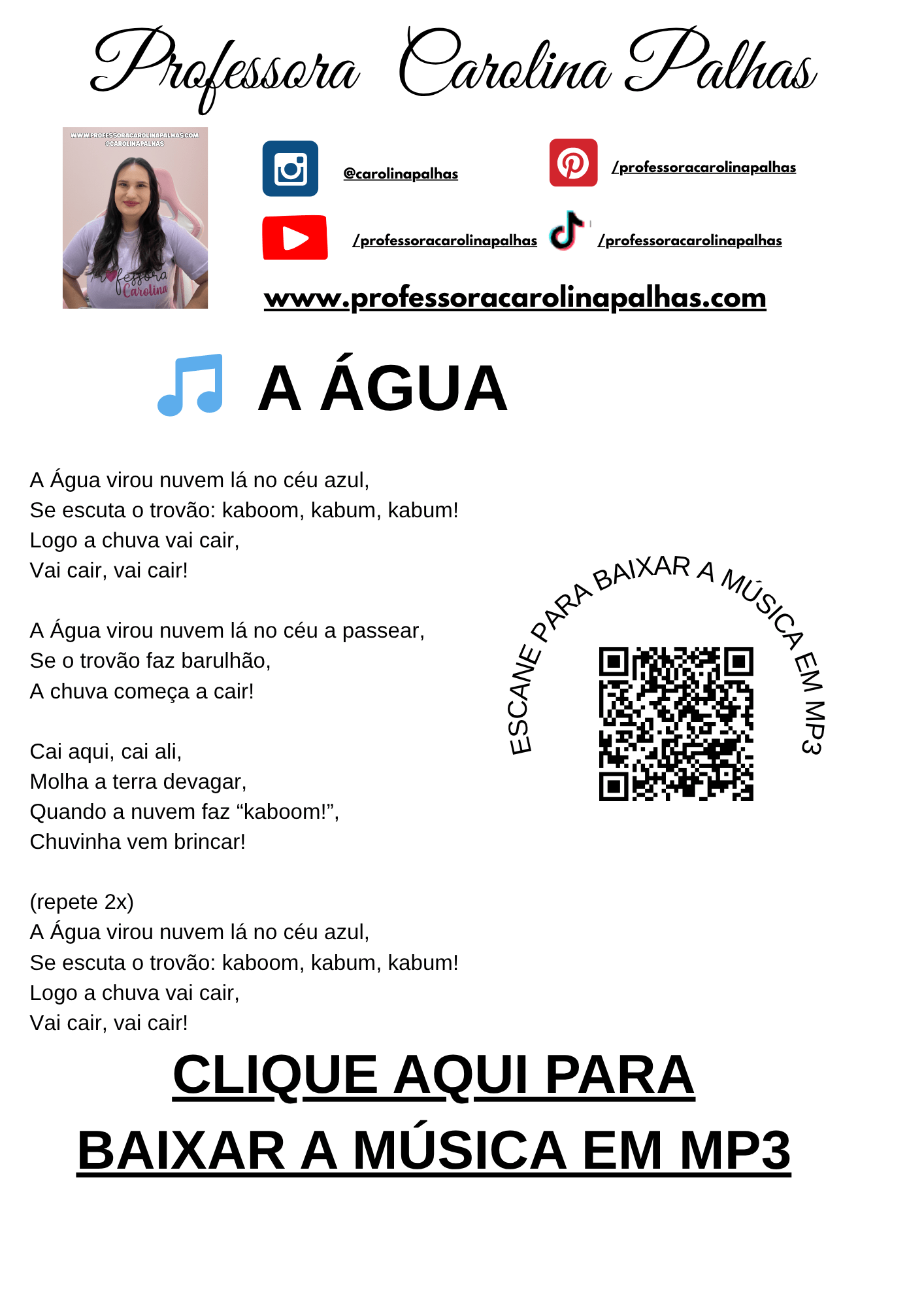 A música “A Água” é uma excelente proposta para desenvolver diferentes habilidades, pois aborda um tema essencial: o cuidado com a natureza e a compreensão do ciclo da água. Além disso, ela possibilita integrar movimento, linguagem, imaginação e conhecimento científico de forma leve e acessível.