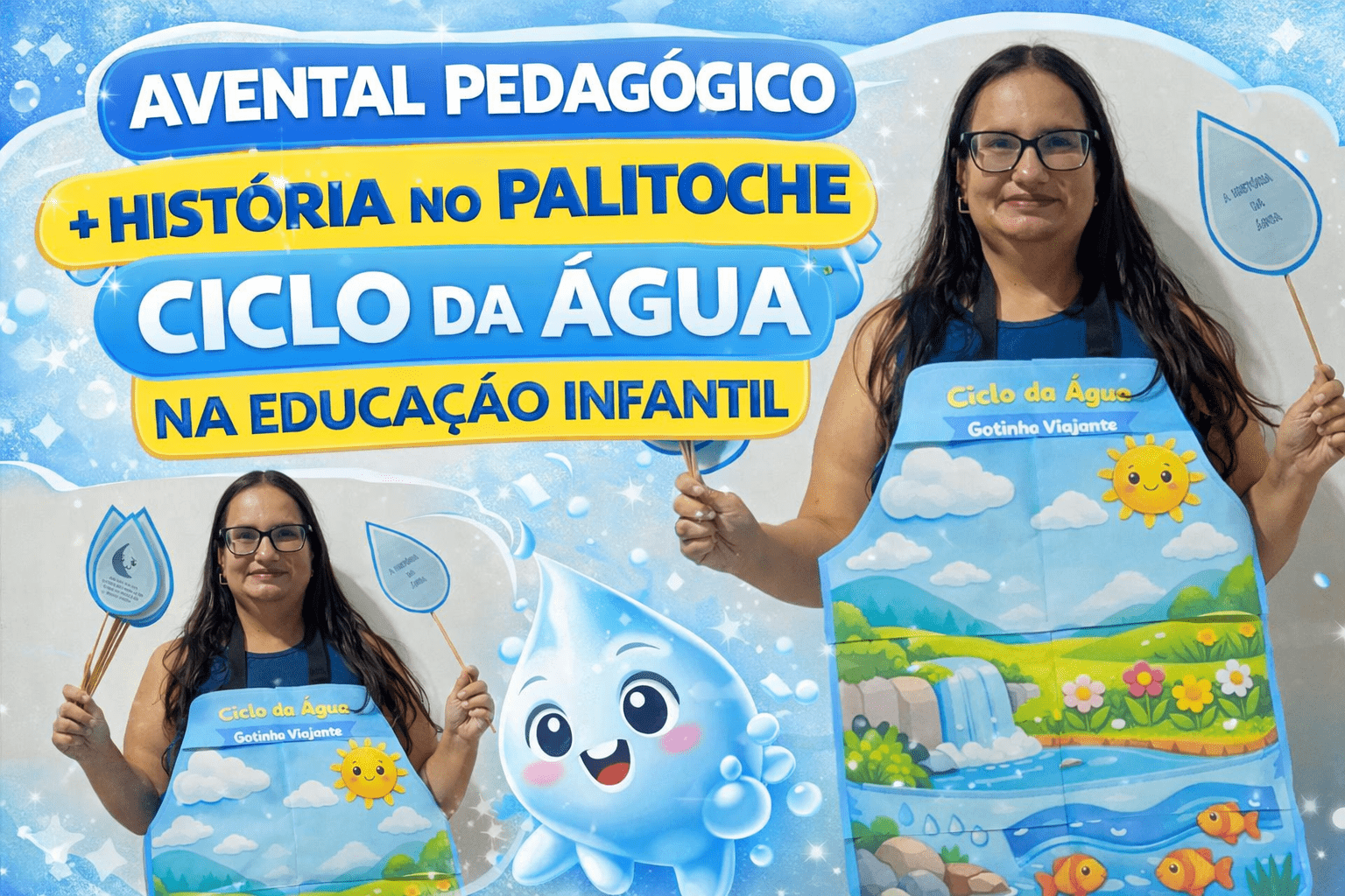 Palavras-chave: educação infantil, ciclo da água, atividades lúdicas, BNCC educação infantil, contação de histórias, avental pedagógico, palitoche, aprendizagem significativa, recursos pedagógicos, meio ambiente educação infantil, planejamento semanal educação infantil, aula interativa, coordenação motora, linguagem oral, consciência ambiental, ensino lúdico, projeto água educação infantil, atividades sobre água, tapete pedagógico, práticas pedagógicas