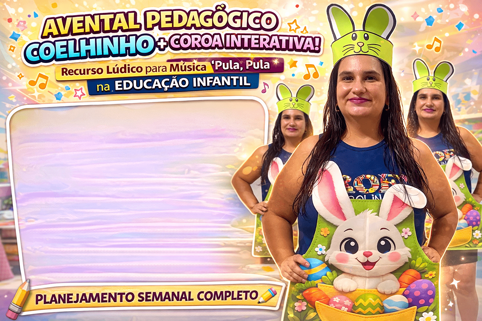 E é exatamente aí que entra o Avental Pedagógico do Coelhinho + Coroa Interativa.