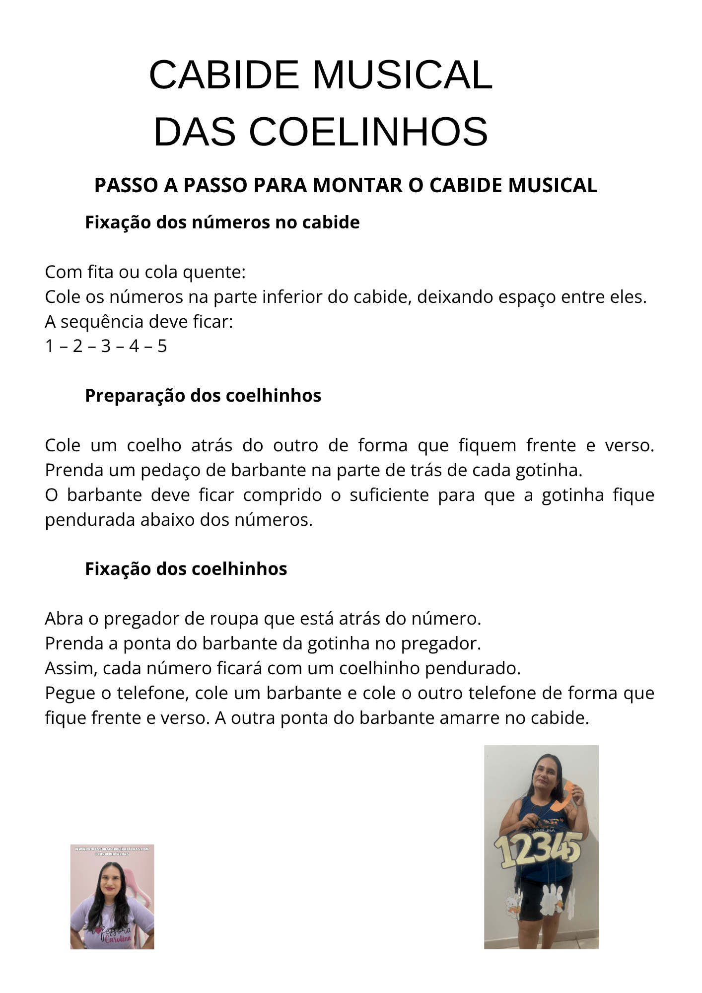 Durante a música, o professor assume o papel do coelhinho, utilizando o avental e a coroa para: